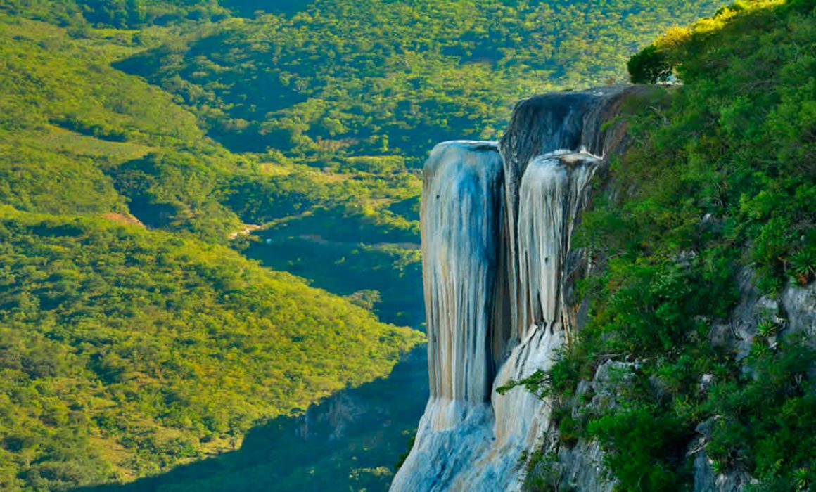 Lugar sagrado de los antiguos zapotecas en Oaxaca con dos impresionantes cascadas petrificadas.