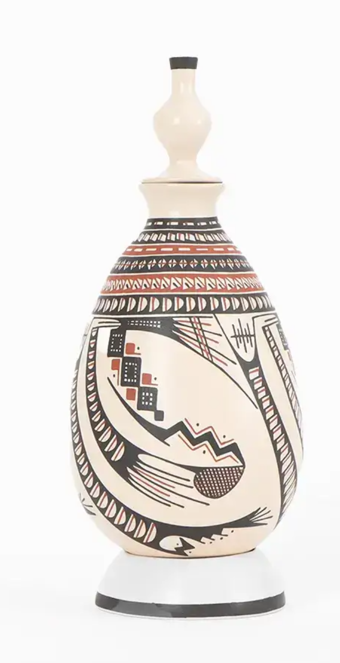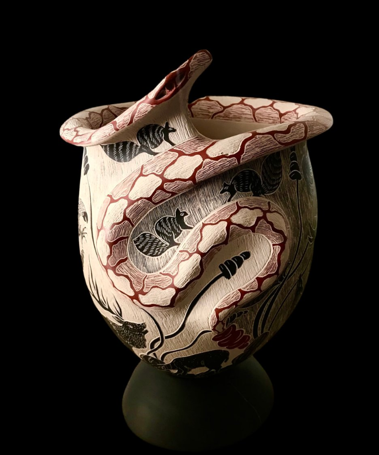Son cerca de 300 familias las que avivan la tradición alfarera de más de 600 años en Paquimé, empleando la misma técnica y materiales con las que se realizaron extraordinarias vasijas durante el periodo mesoamericano. Con un sentido de actualidad e innovación, las y los artistas de Mata Ortiz renuevan los diseños y rasgos estilísticos que les distinguen y que han generado interés en todo el mundo. Las geometrías y patrones simbólicos revelan a simple vista un aliento nómada y tribal, de profunda conexión con la tierra.