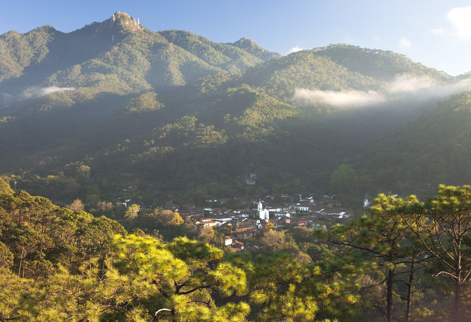 San Sebastián está envuelto por árboles frutales, pinos y encinos, refugiados por una tenue niebla que se extingue lentamente cada mañana con rayos del sol que se escurren lánguidamente entre ramas iluminando casonas, ex haciendas y casitas con techos de teja.