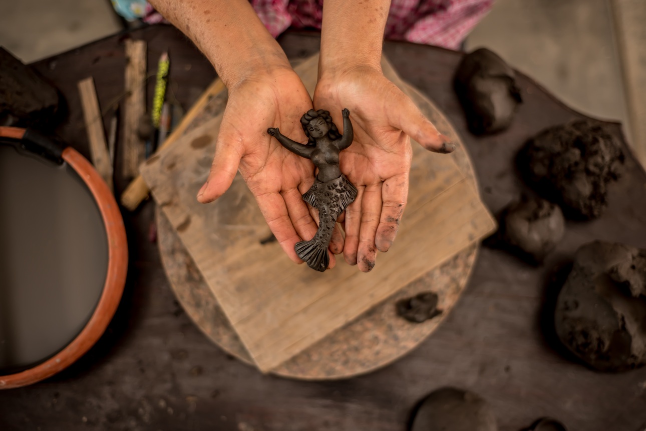 Así mismo, una de las peculiaridades tradicionales de esta artesanía, es la técnica conocida como "pastillaje" que consiste en realizar, sobre la pieza principal ya moldeada, aplicaciones de diversas figuritas de barro, principalmente flores.