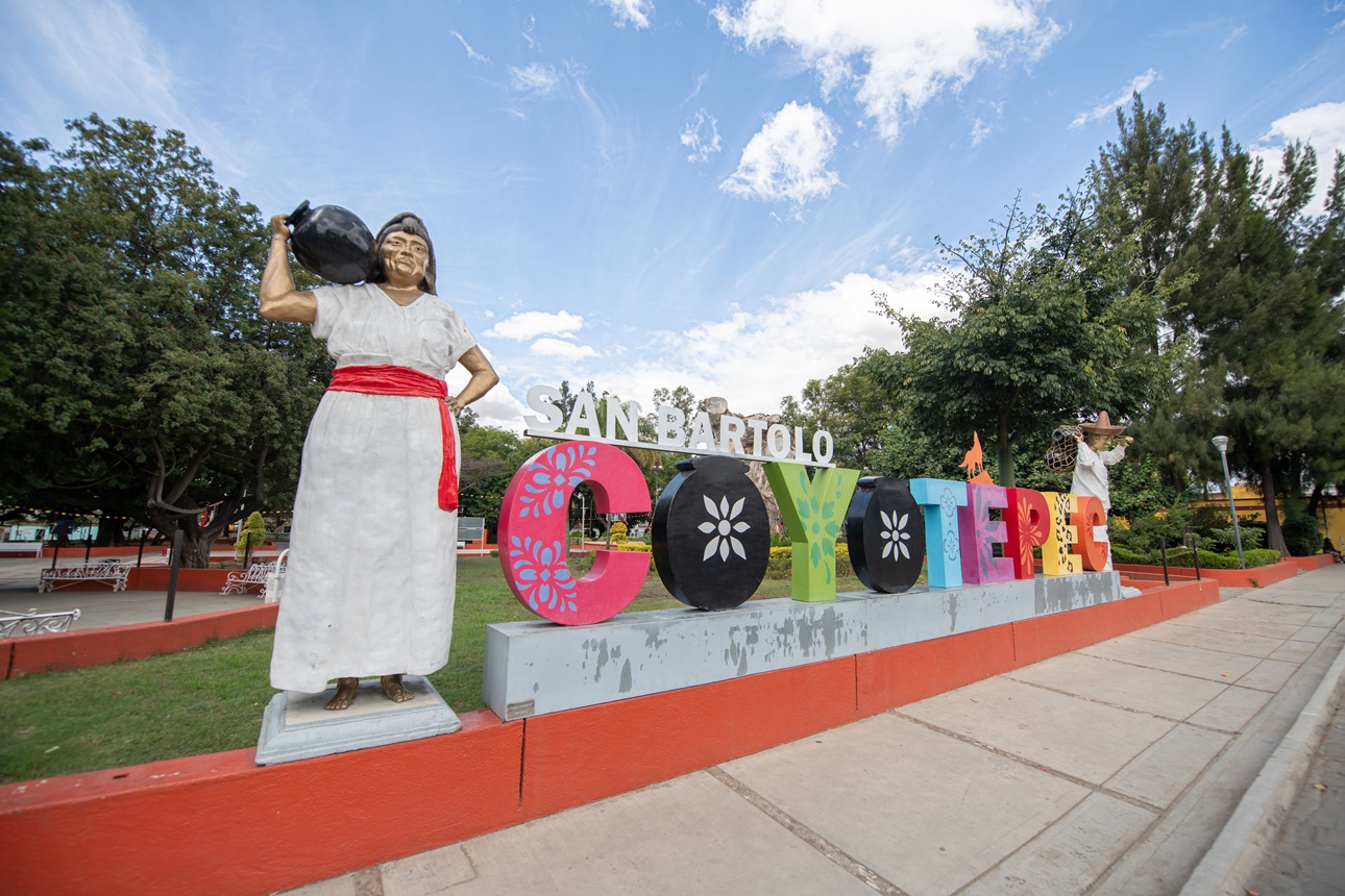 San Bartolo Coyotepec “Cerro del coyote", en náhuatl es la primera localidad en el trayecto al sur de la Ruta Mágica de las Artesanías, y es reconocida nacional e internacionalmente por su bella y vistosa cerámica de barro negro.