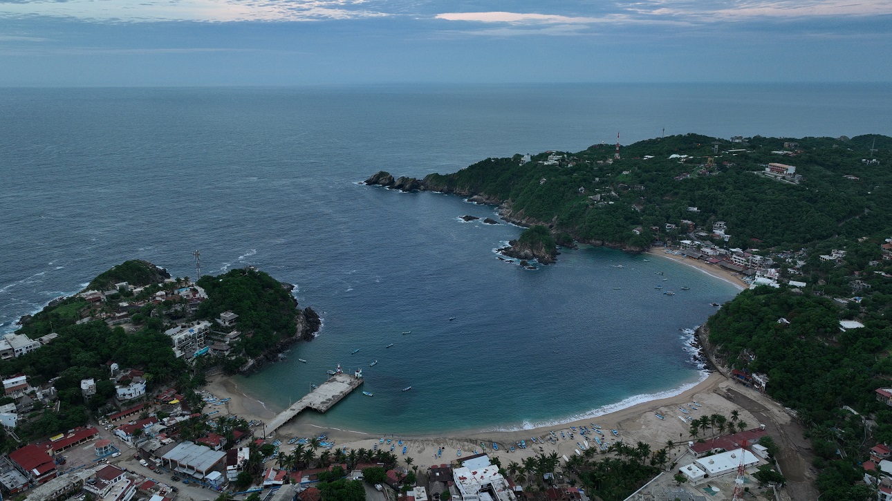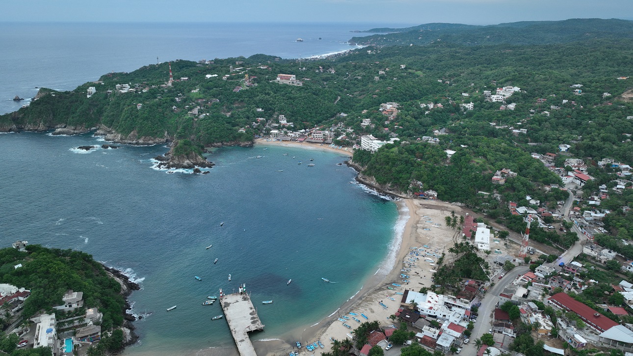 A unos 80 kilómetros de Puerto Escondido, la mayoría de los visitantes llegan desde su aeropuerto. El aeropuerto de Huatulco está un poco más cerca, a sólo 50 km por la misma costa. Y muchos visitantes visitarán las cercanas Mazuntey Zipolitedurante el mismo viaje. Antaño llamada Bahía del Ángel, la localidad es muy apreciada por su bahía casi perfecta, por sus interminables playas y por su costa rocosa, donde las tortugas siguen regresando cada año. Comparten el mar con barracudas, bonitos, pargos, peces vela, dorados, marlines, peces gallo, atunes y listados, lo que la convierte en tierra de pesca de primera.
